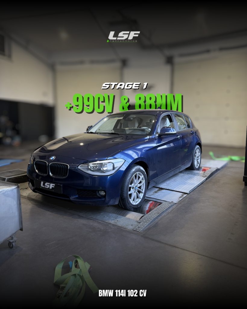 Chez LSF Performance, nous avons optimisé cette BMW 114i f20 102cv grâce à un Stage 1 moteur.